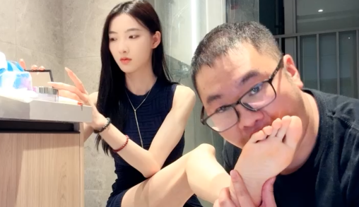 情侣奴被高贵辣妹当清理鞋底汗脚工具使用